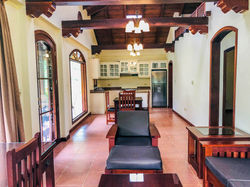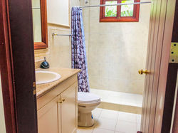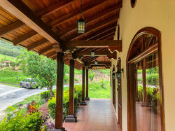 La casa en sí misma ofrece un hermoso porche cubierto, con azulejos, ideal para relajarse o disfrutar de una comida mientras contempla las vistas y los sonidos de la naturaleza y las montañas circundantes.
