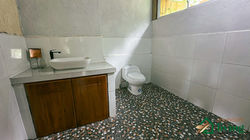 In terms of infrastructure, there are five cabins: three in good condition and habitable, one usable, and another that requires repair. The main cabin is built with treated giant bamboo and has two floors: a bedroom upstairs and a kitchen, living room, dining room, and bathroom downstairs, as well as a functional (though unfinished) jacuzzi. Electricity is provided through a single meter for the entire complex. The first two cabins have potable water, while the remaining three use well water pumped to the structures.