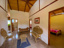 El tamaño de construcción de la casa es de aproximadamente 200 metros cuadrados (2152 pies cuadrados). Dispone de cuatro dormitorios y dos baños. Antes de entrar a la casa, verá el hermoso paisaje y la entrada al patio cubierto de la casa. Al costado de la casa hay un gran patio de azulejos con parrilla al aire libre y horno de barro. ¡Esta área es perfecta para recibir amigos y familiares! Al entrar a la casa, se encuentra en la sala de estar de concepto abierto y la cocina a un lado. Si bien la cocina es humilde, es completamente funcional. Puede hacer algunas mejoras fácilmente para llevarlo a estándares más altos. El segundo piso cuenta con hermosos techos abovedados, una amplia sala de estar, dormitorios y ofrece un balcón envolvente que se extiende a la mitad del perímetro de la casa.