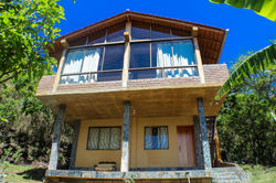 The house is contained on the second floor and after ascending the metal stairs you discover a large sunroom/living area whose entire front facing wall is glass windows highlighting the majestic views the mountains with Mandango prominently displayed. Directly behind this seating area is the well laid out kitchen featuring lots of light, wood cabinetry, porcelain countertops, double sink and a warm, open, airy feel. Continuing past the kitchen to the left is a large bathroom with 2-person bathtub and ornamental stonework. To the right is the bedroom and behind the bedroom is a large covered patio and nature sanctuary featuring a manmade waterfall, massive crystal and is just a wonderfully inviting space to spend time and enjoy the year round warm climate and sights and sounds of nature. There is also a small office located off the back porch.