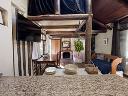 Centrally located within an original adobe building, the kitchen, dining, and laundry area showcase granite countertops and premium appliances, including a large refrigerator, front-loading washer/dryer, and a half-size dishwasher, all recently updated within the last year. An on-demand electric hot water heater ensures ample hot water supply for the kitchen and the Blue Bathroom. The presence of a fireplace—an uncommon feature in Ecuador—adds a touch of coziness. The property is also equipped with a robust battery/inverter backup power system, currently servicing essential appliances such as the refrigerator, freezer and cabana. This system can easily integrate with solar panels, a charge controller, and a wind charger (pre-existing but not currently installed).