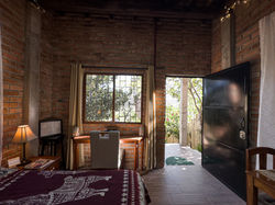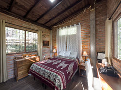 Elevated within the garden and accessible via recently renovated steps of handcrafted Ecuadorian stonework with steel handrails, the cabana offers breathtaking vistas. Constructed with an attention to detail, the cabana features premium materials such as concrete, steel, stone, and locally fired brick. Ceramic tile flooring, premium metal sliding windows with screens, decorative security bars, and a steel entry door with a keyless deadbolt ensure both aesthetics and security. The cabana offers electric service, Wi-Fi connectivity, and a small refrigerator. Fully furnished and thoughtfully designed, this space is an inviting guest room or a potential rental opportunity. A well-appointed bathroom is conveniently located in the lower garden building.